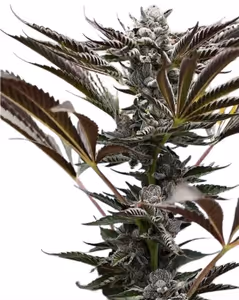 Baby Jokerz wächst zu einer mittelgroßen bis großen Pflanze von etwa 150–240 cm heran und überzeugt mit kräftiger Verzweigung sowie dichten, harzreichen Blüten. Die leuchtend orangefarbenen Pistillen setzen einen auffälligen Kontrast zu den lila-grünen Buds, die dicht mit weißen Trichomen bedeckt sind. 🌿